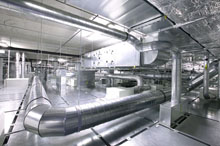 Die neue Sterilfabrik von hameln pharma verfügt über vier unabhängige Lüftungsanlagen mit einem Luftdurchsatz von insgesamt 180.000 Kubikmetern Luft pro Stunde, um die Versorgung der 4000 Quadratmeter großen Reinraumfläche mit steriler Luft gewährleisten zu können. Kontrolliert und gewartet wird die gesamte Luftverteilung über eine direkt begehbare Pharma-Reinraumdecke.weiter